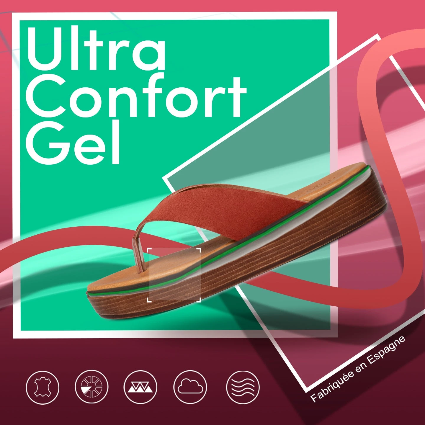 Technologie du confort: semelle intérieure en cuir Ultra Confort Gel