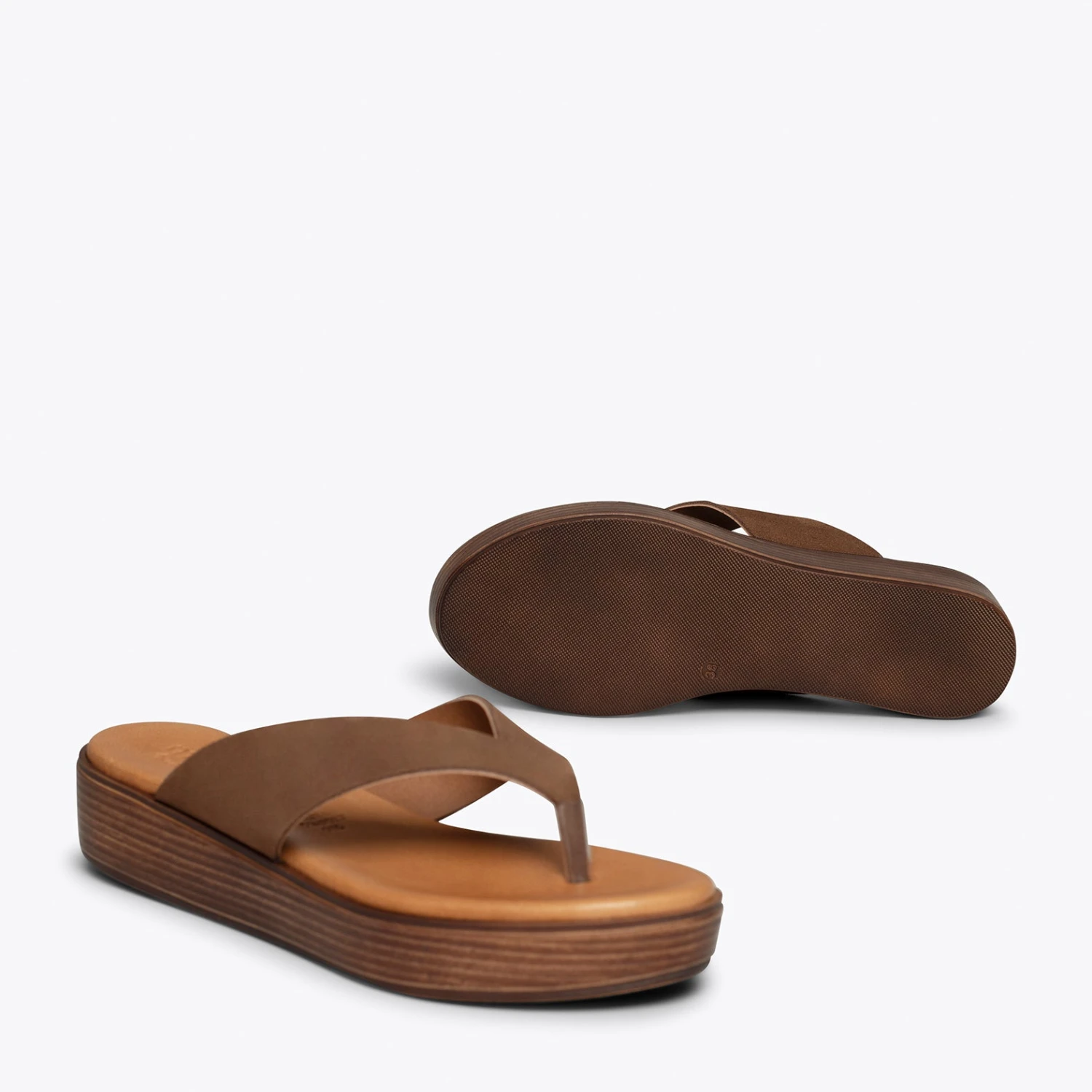 Sandales entre doigts d’été 2021. Sandales à plateforme MARRON Fabriquées en Espagne. Profitez de la qualité d’une chaussure espagnole que vous trouverez dans votre boutique en ligne de sandales et chaussures miMaO.