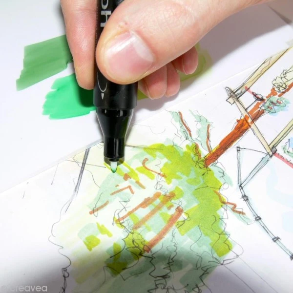 – Testez éventuellement sur du papier layout avant d’appliquer la couleur sur la zone souhaitée de votre dessin.