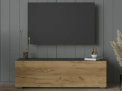 Meuble Tv-hifi KINGSTON 1 Porte Battante 105 Cm Chêne Noir/chêne Doré